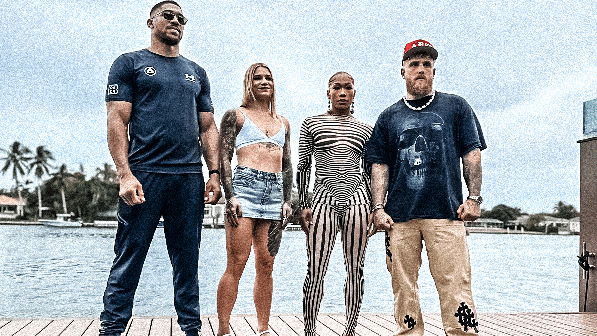 Photo: Anthony Joshua, Leïla Beaudoin, Alycia Baumgardner and Jake Paul